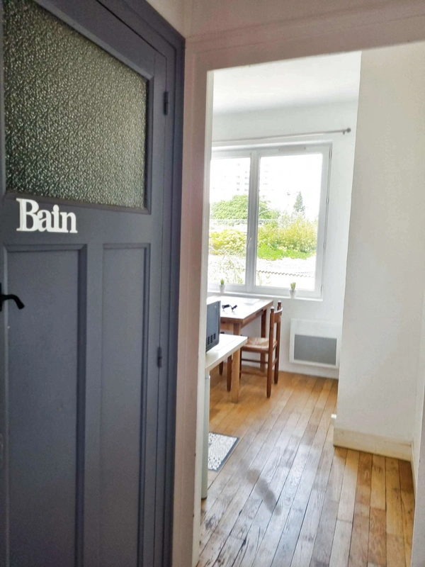Nantes A Louer appartement meublé T1bis de 24 m2 Nantes, situé quartier Mangin à 8 mn de l'hypercentre et du futur CHU Situé au 1er étage. Ce nid douillet vous séduira par ses parquets, lumineux et traversant. Cet appartement de Type T1Bis de 24m2 environ est composé d'une entrée, d'un bel espace de vie avec mezzanine, canapé, bureau, rangements + un placard, une SDE avec WC aux couleurs tendances, une cuisine séparée équipée d'une table avec chaises, four micro-ondes, lave linge. Les plus : Double vitrage, au sein d'une impasse. Au pied des commerces et du Tram 2 et 3. A visiter rapidement ! Disponible à partir 30 juin 2023. Loyer HC : 594.69EUR/mois - Charges : 30EUR/mois (eau froide, entretien de la copropriété, Taxe Ordures Ménagères). Provisions donnant lieu à une régularisation annuelle. Dépôt de garantie : 800 EUR Part locataire : Honoraires d'agence comprenant : Rédaction du bail : 238 euros TTC et Etat des lieux 71,44 euros TTC ne comprend pas l'abonnement internet et les consommations électriques, Information énergétique sur ce bien : DPE D indice 205 et GES B indice 6 Consommation énergétiques : 205 kWh/m2/an Emissions de gaz à effet de serre : 6 kg/m2/an 'Les informations sur les risques auxquels ce bien est exposé sont disponibles sur le site Géorisques : http://www.georisques.gouv.fr'. Nos honoraires sont consultables sur : www.noovimo.fr. Réf : 13422. Votre agent commercial indépendant Noovimo Sylvie Cayen au 06 86 41 18 88 inscrit au RSAC de Nantes sous le No823213475 1 - Annonce rédigée et publiée par un Agent Mandataire -